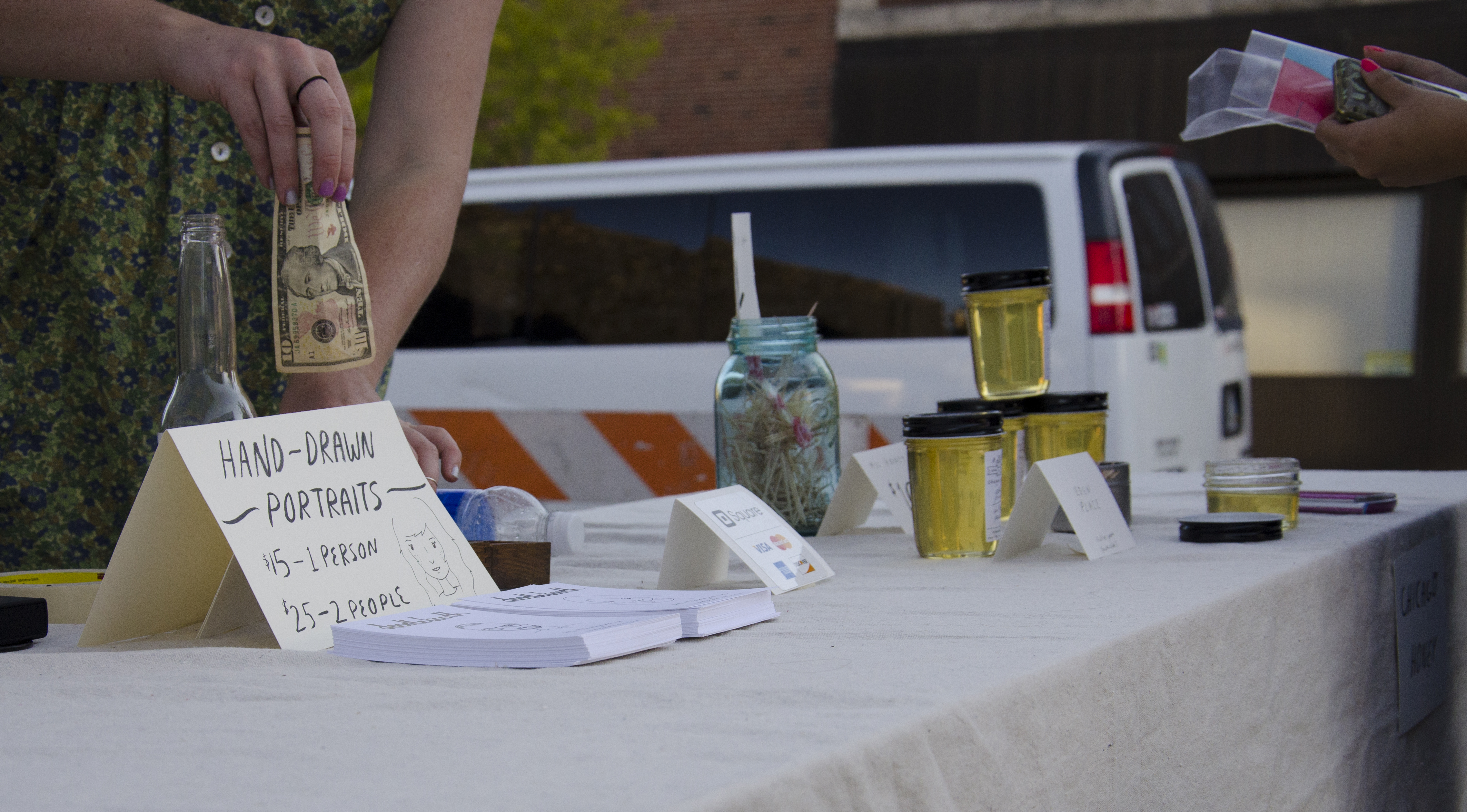 The Made Fest that took place both Saturday and Sunday displayed various pieces of handmade art as well as vintage clothing. It was located outside the gate of the main stage in downtown Champaign and was open to the general public even if they didn’t have a ticket to the festival. In addition to displaying art and clothing, Made Fest also featured one of Champaign – Urbana’s favorite treats, Pandamonium Doughnuts.